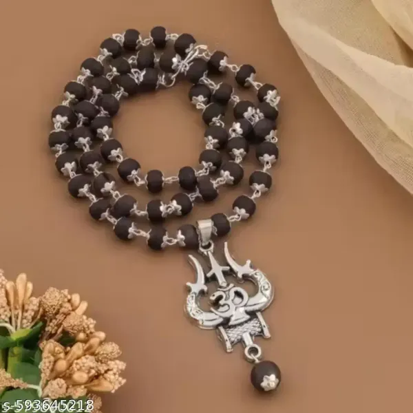 Original Karungali Mala with Silver Trishul Om Pendant – Powerful Spiritual..More